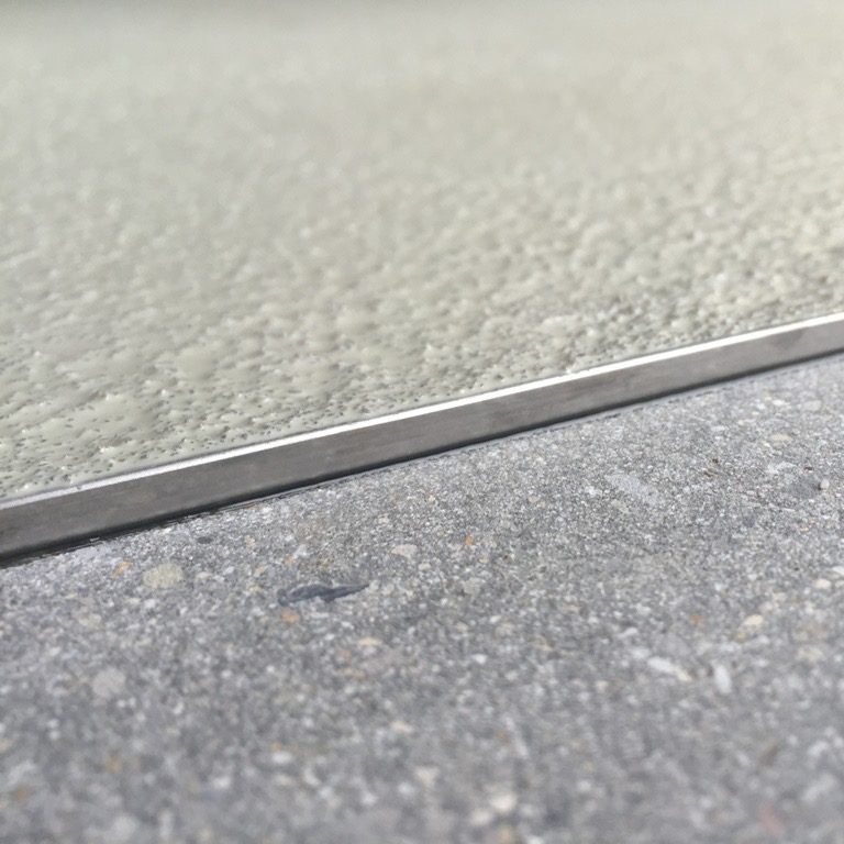 Im Bereich der Tore kann die Beschichtung zusätzlich mit einer Aluminiumschiene eingefasst werden. Diese dient sowohl dem sauberen Abschluss der Fläche als auch der optischen Gestaltung.